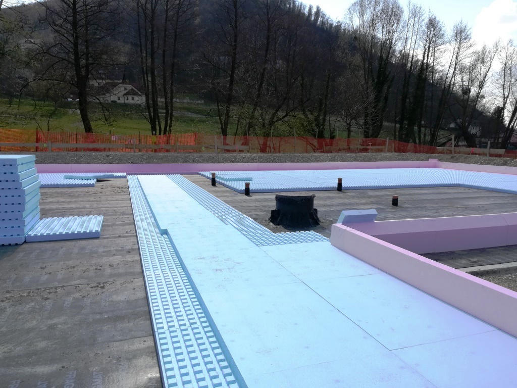 V začetku aprila je izvajalec Kostak d.d. kljub krizi zložil eno izmed naših površinsko večjih toplotnih izolacij pod temeljno ploščo za vrtec Senovo. Površina temeljne plošče je znašala nekaj manj kot 1200 m2. To je že drugi vrtec v občini Krško.