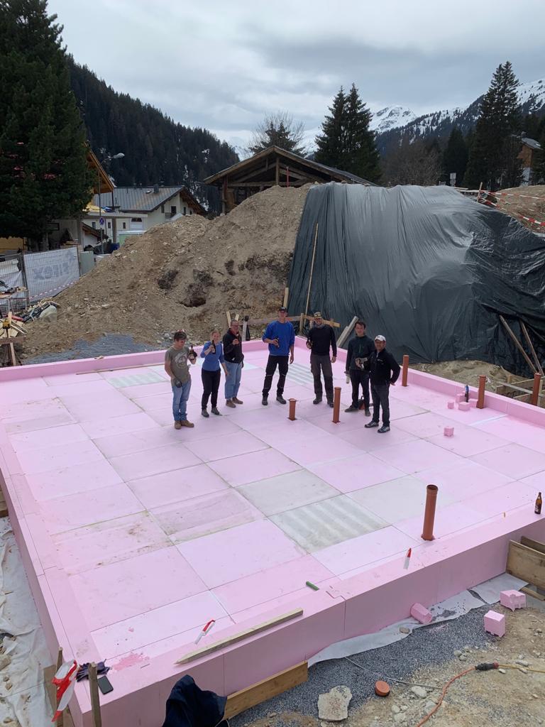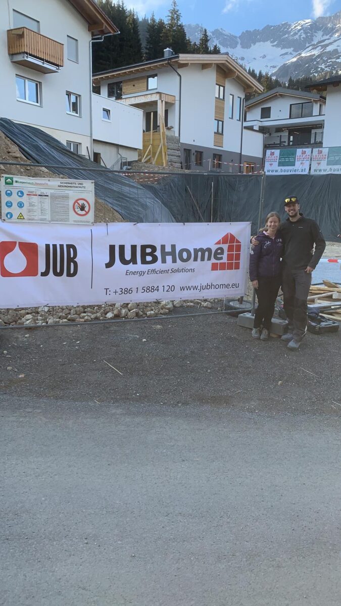 Na Tirolskem, v smučarskem središču St. Anton am Arlberg se je individualni graditelj odločil za gradnjo enodružinske hiše in zunanje garaže z JUBHome sistemi. Zima na Tirolskem je huda, naši elementi pa pravšnji za take razmere. Zadovoljni kupec nam je poslal dva posnetka sestavljanja spodaj. Pričetek gradnje je krstilo majsko sneženje. Na pripravljeno podlago so vgradili JUBHome BASE, debeline 24 cm, sledila je gradnja kleti z  JUBHome WALL elementi 300 in 465.