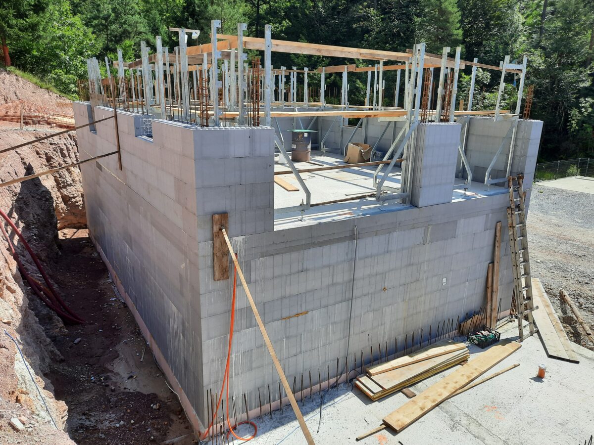 Temeljna plošča je izolirana z JUBHome BASE sistemom, tlačne trdnosti 400 kPa, debeline 16 cm, nosilne stene pa so iz JUBHome WALL 300 in 390 modulov.