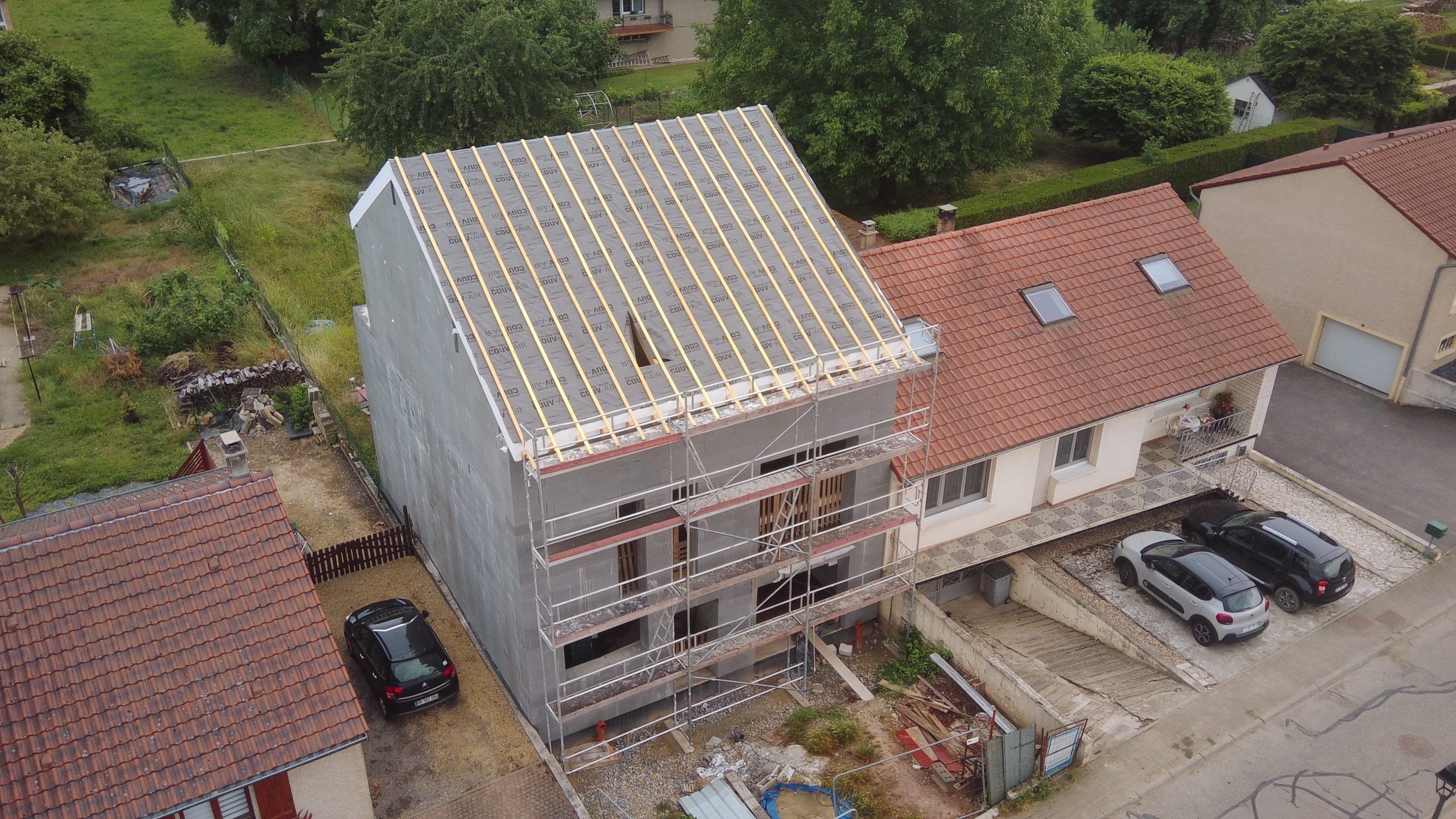 Na francosko luksemburški meji raste nova JUBHome hiša. Francoski samograditelj bo naše JUBHome WALL 465 elemente postavil na pasovne temelje in objekt na vrhu zaključil z leseno strešno konstrukcijo izolirano z JUBHome ROOF elementi.